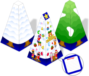 印刷して貼り合わせるだけの簡単なものから、クリスマスツリーに飾れるタイプのもの、飾ってジュルルな組み立てケーキタイプなんかもありますよ。