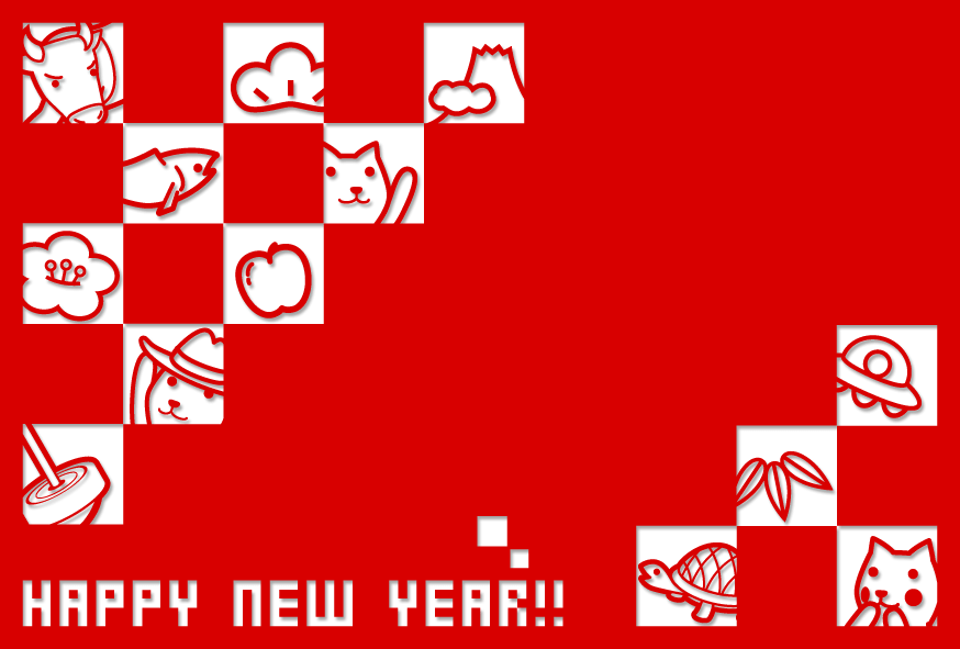 お気に入りの物を見つけて、いろいろ年賀状をデザインしてみてね!